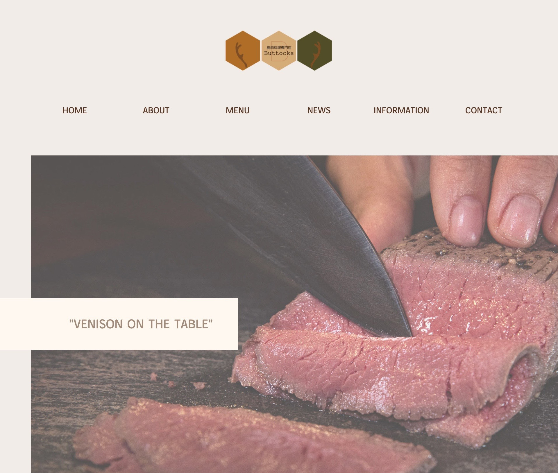 - 鹿肉料理専門店ButtocksのWebサイトを制作させて頂きました。 意識したことは、「鹿肉を食卓に」というテーマを元に、さらに鹿肉をもっと身近に感じてほしいというオーナーの思いをくずさないように色みを大事にしてデザインを考えました。 ターゲットが30~40代の男女ということで大人っぽいくすみのある色で落ち着きを出しつつも暖色系でいろいろな色を使っているので楽しいアットホームな空間も演出しました。 あとは、Webサイトを見る人の立場に立ってわかりやすさ、見易さを意識してシンプルな構成にして制作しました。